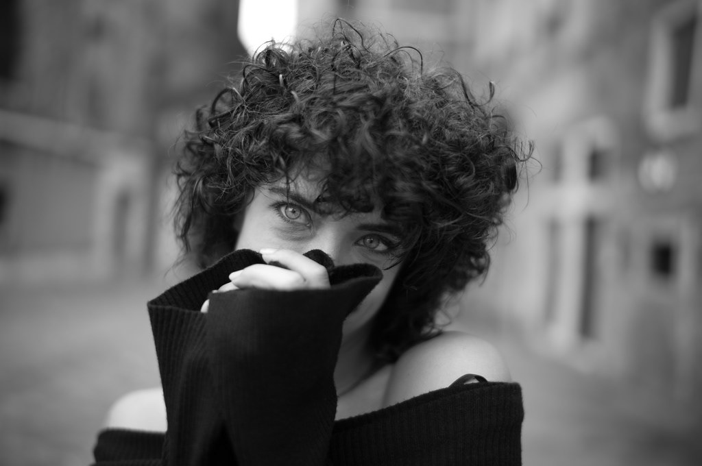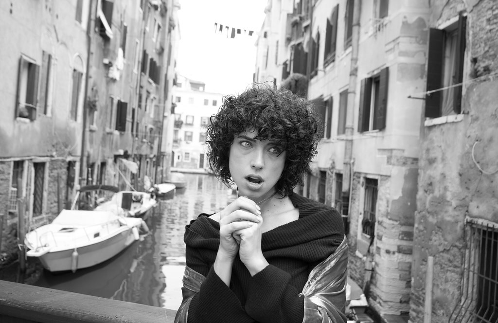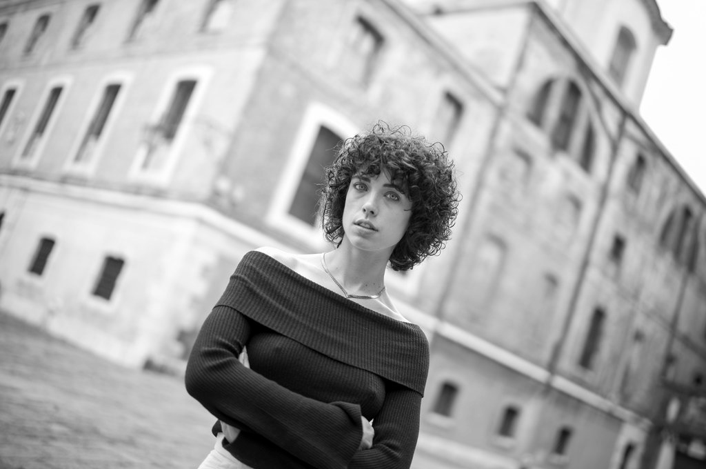 Portrait series of Marcella Apollonia by Fabio Furlotti. Black and white portraits shot with Leica M11 Monochrom in Venice, Florence and Parma, Italy. Natural light, wide apertures, authentic beauty. Fabio Furlotti is a portrait and street photographer based in Parma, published on Photo Vogue Italia, exhibited at Campo del Ghetto Nuovo in Venice and featured on Exibart Street.